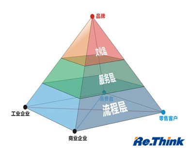 該模型的縱切面為三角形,分別表示四個主體之間兩兩相關(guān)的關(guān)系,并相互交叉,構(gòu)成交互契合的立體結(jié)構(gòu)。每個側(cè)面代表工商零消四方主體之一方,通過自下而上三個層面:流程層、服務層和文化層共同指向卷煙品牌,以培育品牌為該模型的最終目標。
